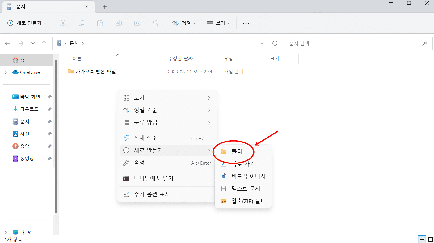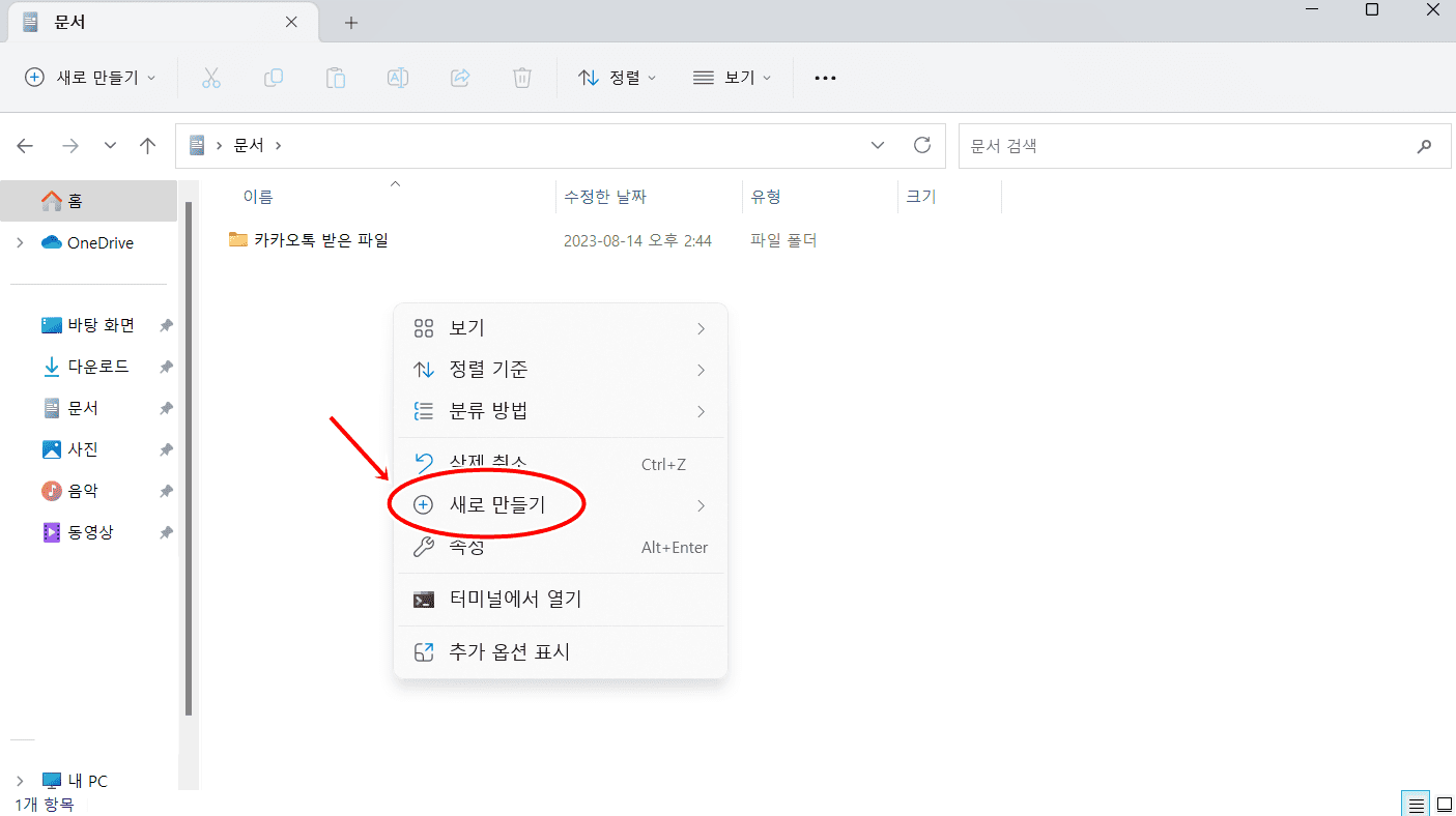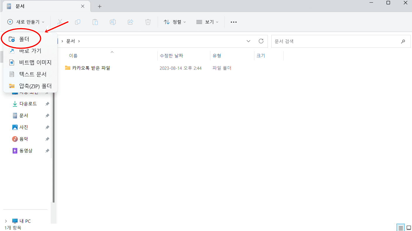 1. 새 폴더를 생성하고자 하는 [파일]에 들어갑니다.
