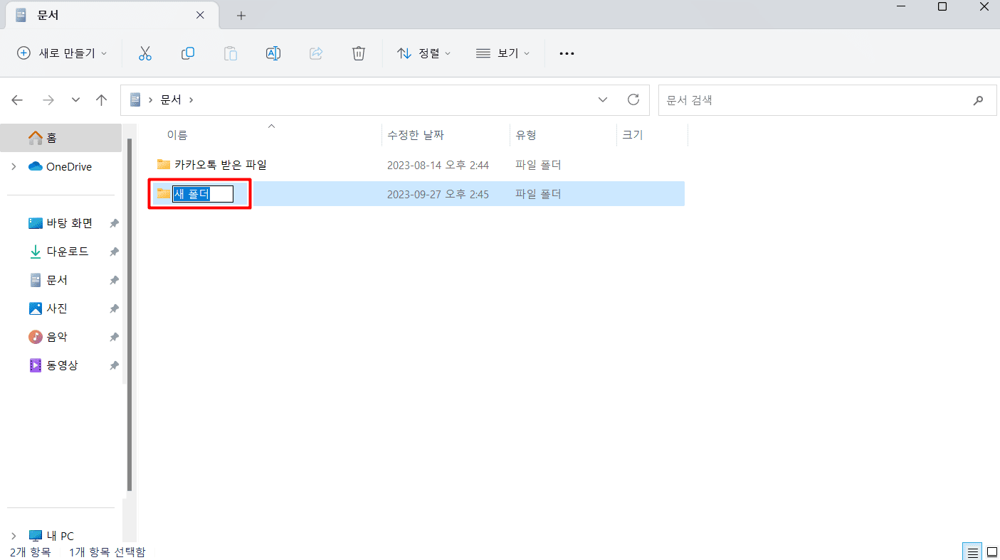 1. [폴더]를 클릭한 상태에서 단축키 [F2]를 누릅니다.