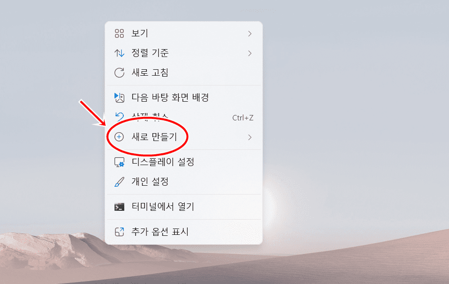 1. 바탕화면 빈 공간에서 [마우스 우측 버튼]을 클릭합니다.