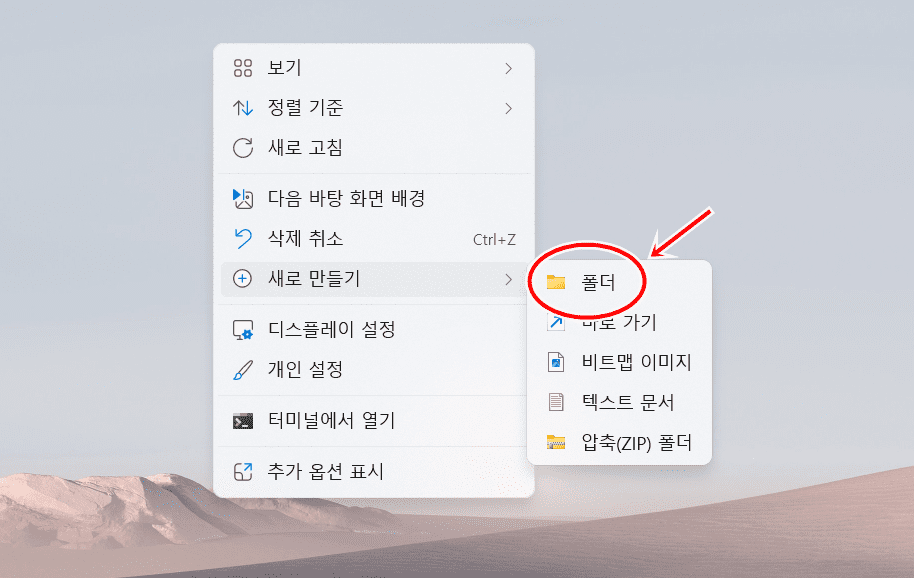 ▶ 바탕화면에 새 폴더가 생성되었습니다.