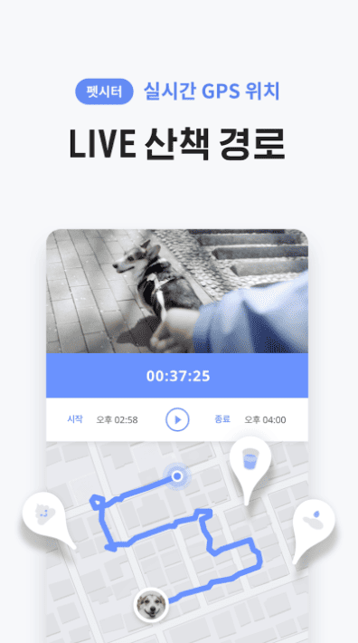 - 돌봄 시작부터 종료까지 모든 펫시터의 동선 녹화 및 공유