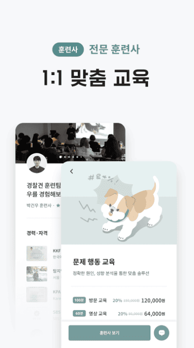 - 반려견의 성향과 원인을 분석하고, 그에 따른 맞춤 교육법 처방