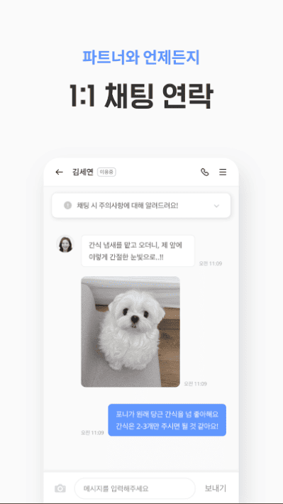 실시간으로 반려견의 상태를 확인할 수 있는 펫시터 채팅