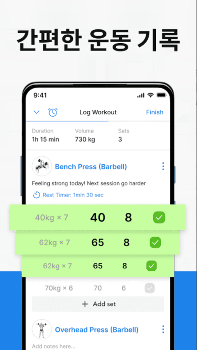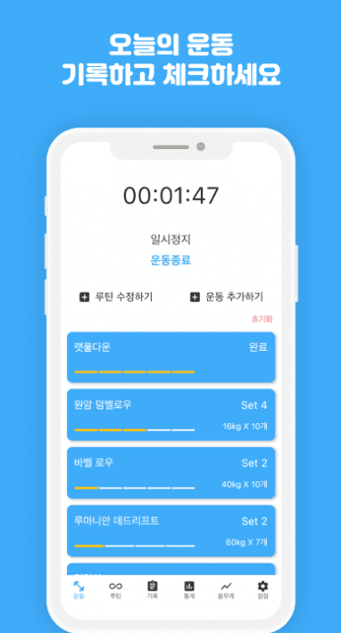 - 쉽고 빠르게 운동 정보를 기록하여 웨이트 리프팅에 집중할 수 있습니다