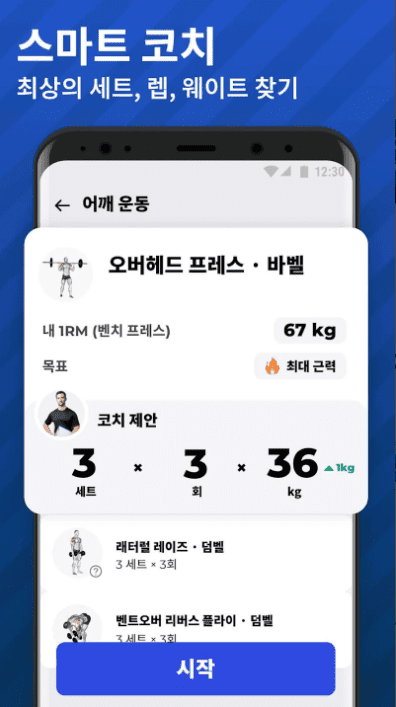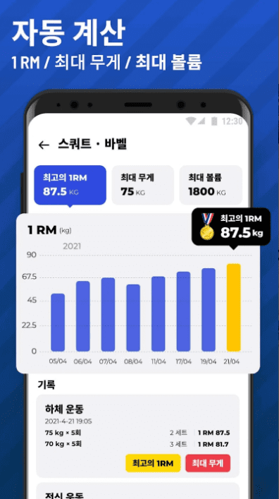 ㆍ 운동 기록을 분석해 예상 1RM을 보여줘요.
