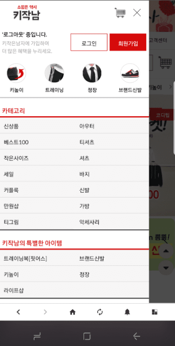 여러가지 기능을 그대로 이용하실 수가 있으며, 현재 키작은남자에서 이루어지는 이벤트, 신상품, 특가상품, 세일상품 등