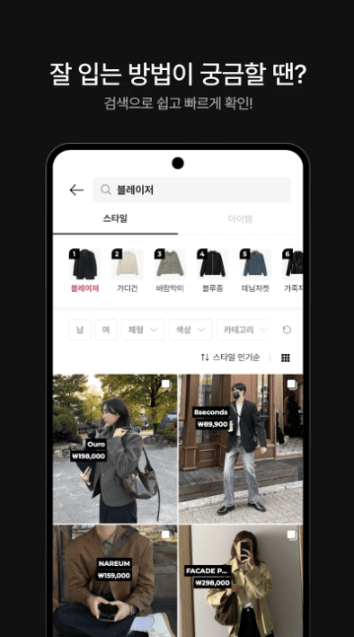 - 색상, 스타일, TPO, 종류, 가격 등에 맞는 코디를 쉽게 찾을 수 있어요.