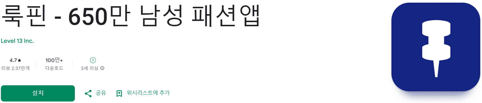 - 룩핀은 1,000여 개의 남자 쇼핑몰, 브랜드가 입점해있어요.
