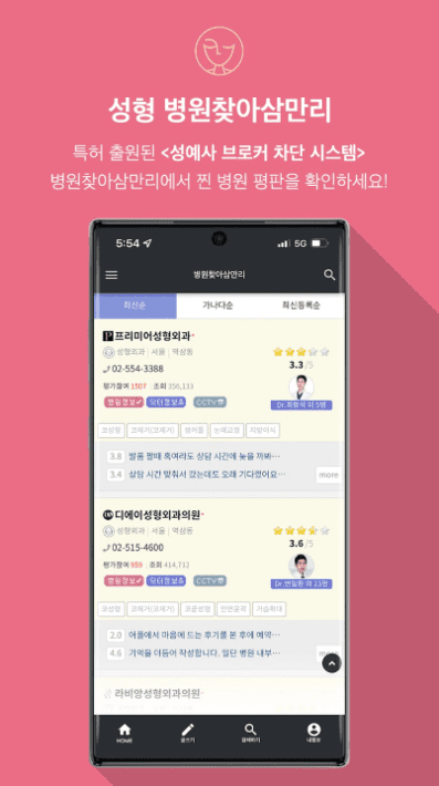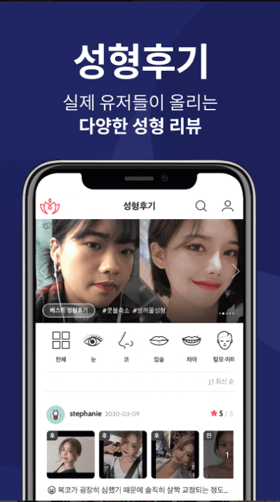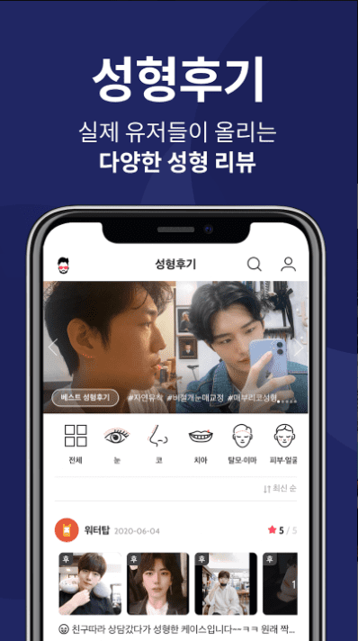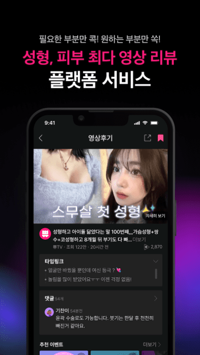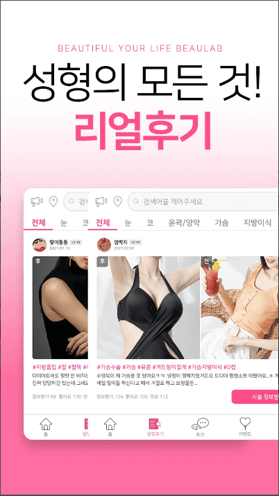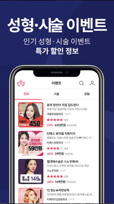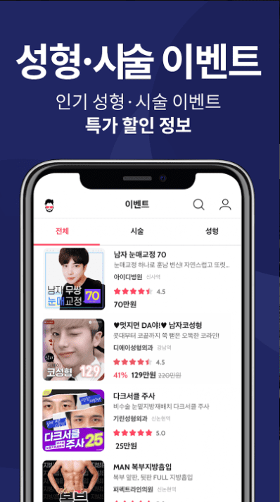- 다양한 이벤트를 볼수있고 검색도 편리하네욤~ 솔직한 후기도 볼수있어서 병원이랑 수술 선택하는데 도움이 되는 앱입니다👍