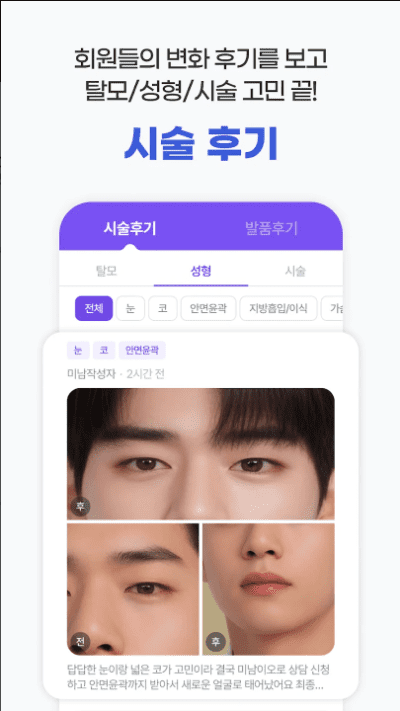 실제 미남이오 유저들의 탈모, 성형, 시술 후기들을 볼 수 있어요!
