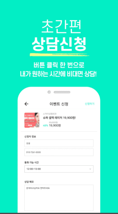 터치 한 번으로 피부 시술&성형 수술 상담 신청