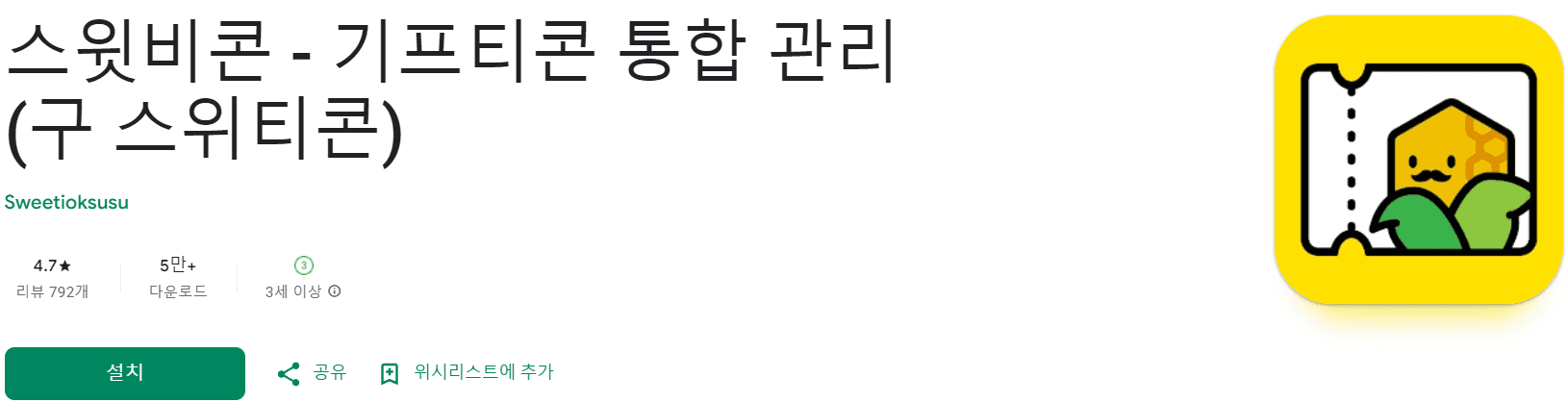 - 정확히 언제부터 사용했는진 기억 안나지만 작년초였나 재작년이었나 그때부터 사용했어요 제가 그동안 써본 모든 앱 중에서 단연 최고의 앱이에요 광고도 없고 복잡하지 않아서 사용하기 쉽고 알림도 해주고 덕분에 기프티콘 날렸던 일 많았던게 스윗비콘 쓰고부터 1개도 놓친 적은 없어요 무엇보다 오류난거 있어서 문의드리면 피드백 빠르게 해주시는 거에 감동받음 기프티콘 날려서 곤란해하는 분 볼때마다 스윗비콘 외치면서 장점 말하면서 추천해왔는데 그분들이 써보고 또 다른 사람들에게 추천하고 그런식으로 스윗비콘 아시는 분 늘어가더라구요 제가 다 뿌듯ㅎㅎ 좋은 앱 만들어주셔서 감사합니다 정말 최고에요