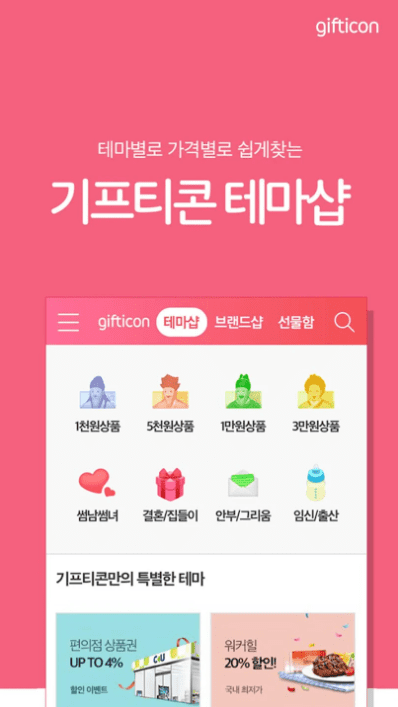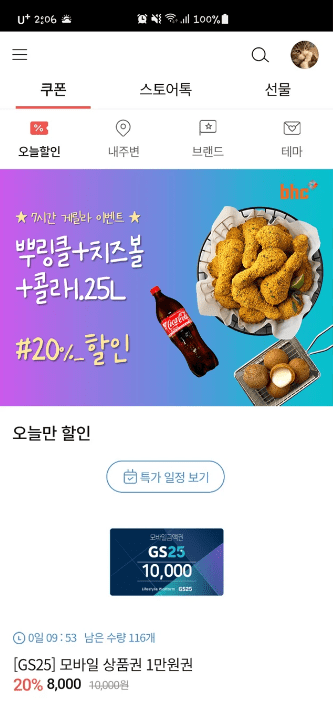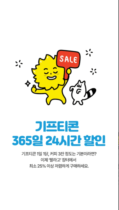 - 매일 기프티콘 ~18% 할인, 국내 119개 브랜드 상시 할인중