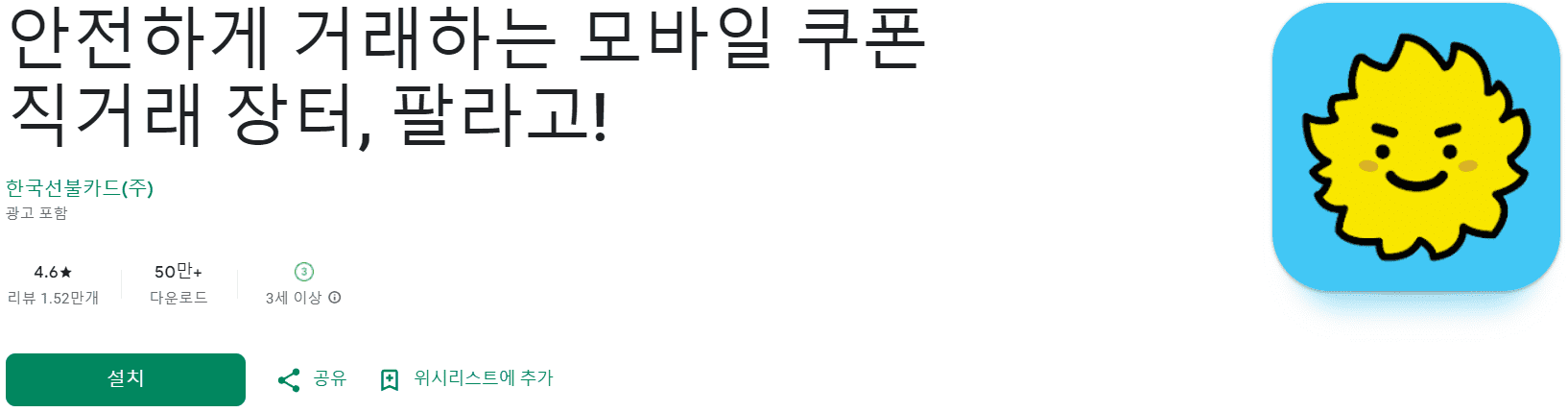 - 이벤트 때문에 알게되어서 사용하게 됐지만 생각보다 엄청 잘 쓰고있습니다..!! 기프티콘 선물해줄때도 할인된 가격으로 사니 너무 편하더라구요ㅎㅎ 이번에 극한의 화력때문에 서버가 터지긴 했지만 이런일도 겪어야 서버를 더 튼튼하게 만드실 수 있다고 생각합니다 정말 유용한 앱입니다 다들 꼭 사용해보시길..!!