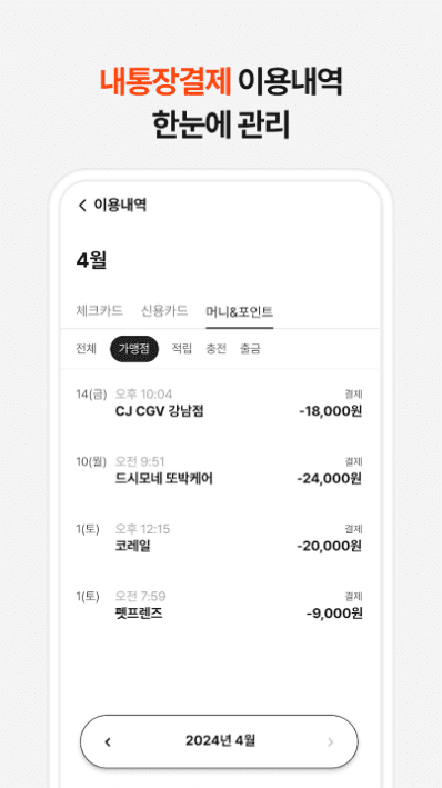 금액권(1만원권, 3만원권 등)의 사용내역을 관리해 사용금액과 잔액을 알 수 있습니다.