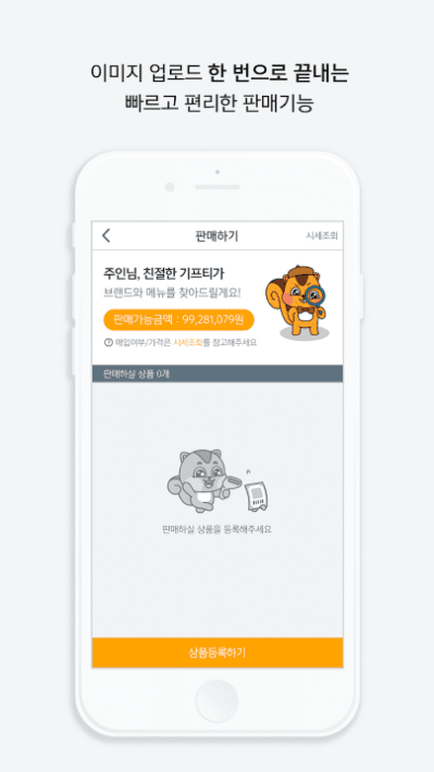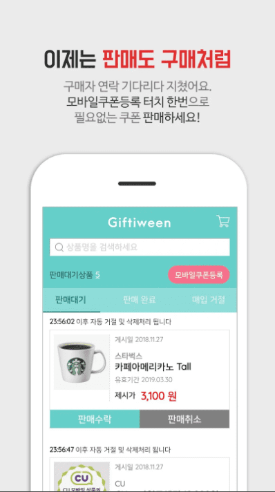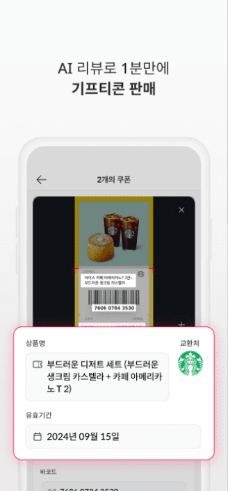 - 원터치 등록으로 빠르고 편리하게 사용하지 않는 기프티콘을 판매할 수 있습니다.