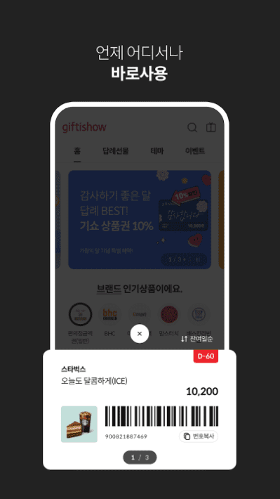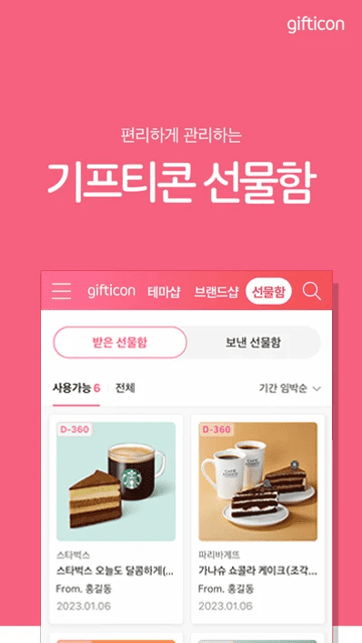 - 생일, 축하, 감사, 위로… 선물이 필요한 다양한 순간, 감성카드와 함께 기프티콘을 보내면 감동이 2배가 됩니다.