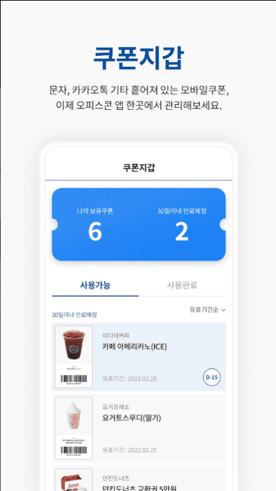 • 버리는 쿠폰 없이 사용할 수 있도록 유효기간 만료 전 알림