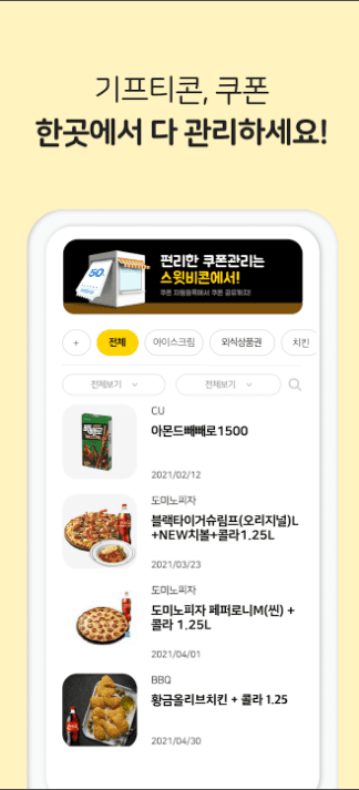 스윗비콘에서 기프티콘들을 한번에 관리해줍니다.