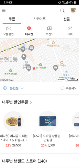- 내주변 누르면 주변 할인쿠폰 및 매장정보도 바로 볼 수 있어요!