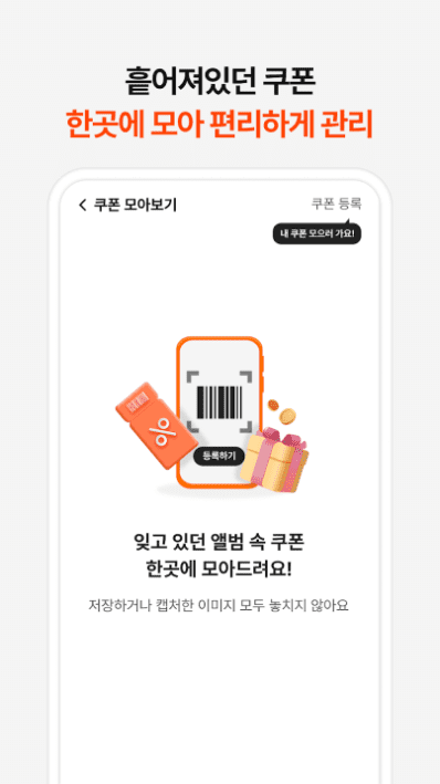 • 여기저기 흩어져 있는 쿠폰을 한번에 모아서 관리하세요!