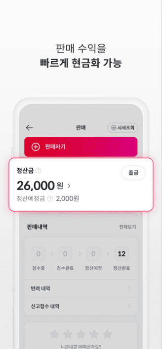 - 기프티콘 판매 후 +2 영업일에 정산되며, 정산 후 언제든지 온라인 계좌이체를 통해 현금으로 출금할 수 있습니다.