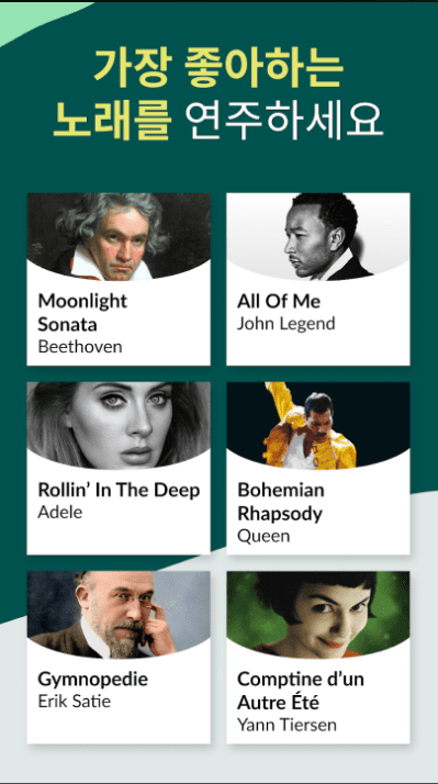 이 앱은 피아노 연주에 지식이 없는 모든 사람을 위한 것이며, 아이부터 성인까지 모든 연령에 적합합니다.