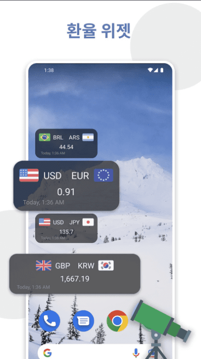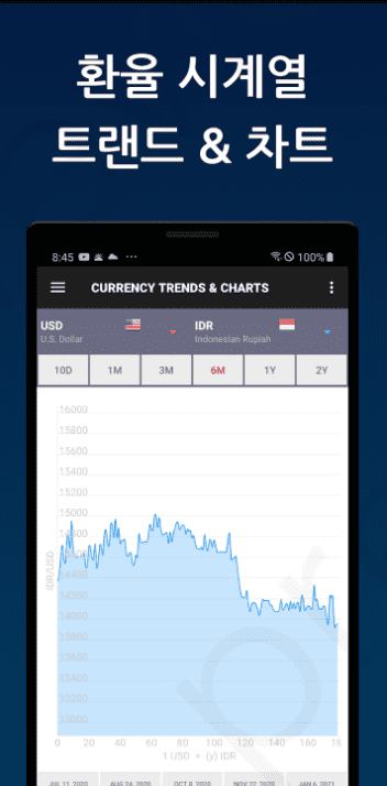 상태 표시줄과 홈스크린 위젯에 실시간 환율 정보를 제공합니다. 빠르고 정확하고 편리하게 환율 추이를 파악 할 수 있습니다.