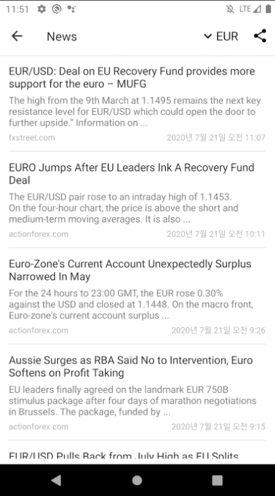 최신 금융 뉴스를 언제든 손끝에서 확인하세요. 앱에는 세계 통화 동향에 관련된 뉴스 피드가 포함되어 있습니다.