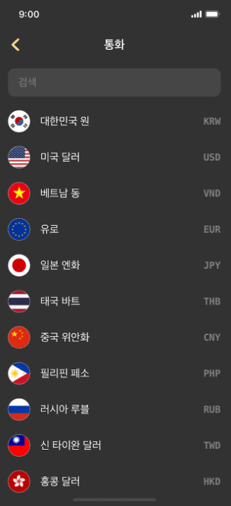 ○ 조회 및 계산 가능 통화(일부 통화는 준비 중...)