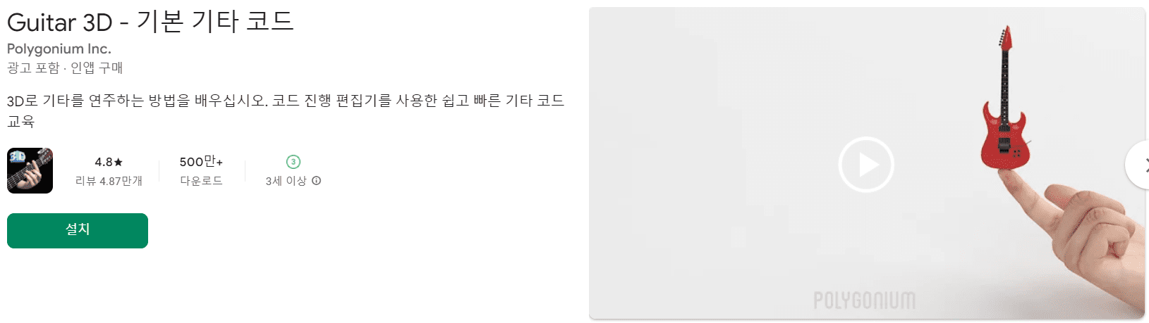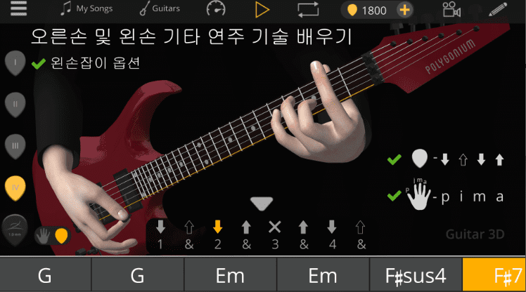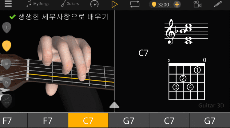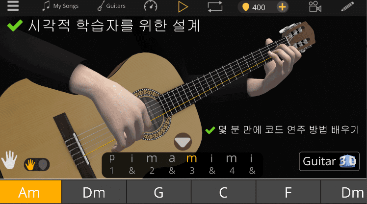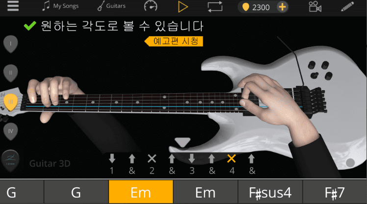 이 3D 최고의 기타 학습 앱을 사용하여 단 몇 분 만에 기타 코드 연주, 스트러밍 및 핑거피킹 방법을 배울 수 있습니다.
