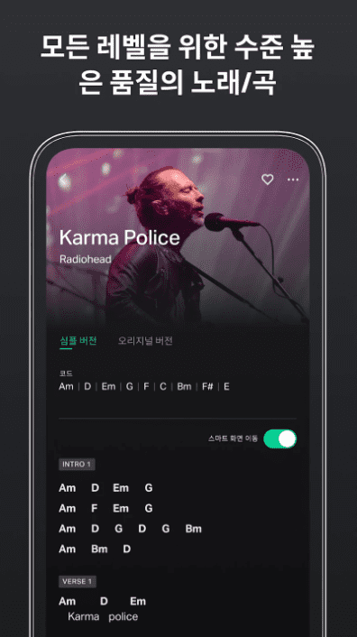 🎶 맞춤형 경험: 록, 재즈, 컨트리 등 다양한 장르의 노래를 검색하고 재생할 수 있습니다. Chordify는 귀하의 음악적 취향과 학습 속도에 맞춰 조정됩니다.