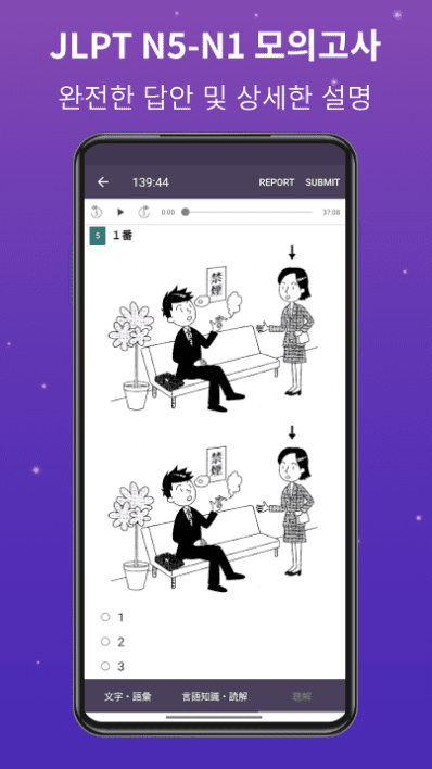 - JLPT 시험에 능숙하고 JLPT 모의고사에 응시하여 JLPT 수준을 향상시키십시오.