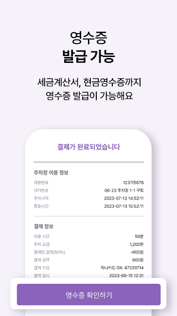 이용 후 지출 증빙이 필요할 땐 영수증 화면까지 활용해 보세요.