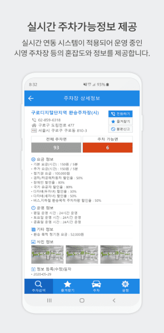 · 위치, 요금, 운영시간, 사진 등 주차장 상세 정보 제공