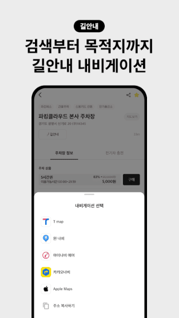 5. 해당 통신사 네비게이션과 연동하여 주차장 안내 기능