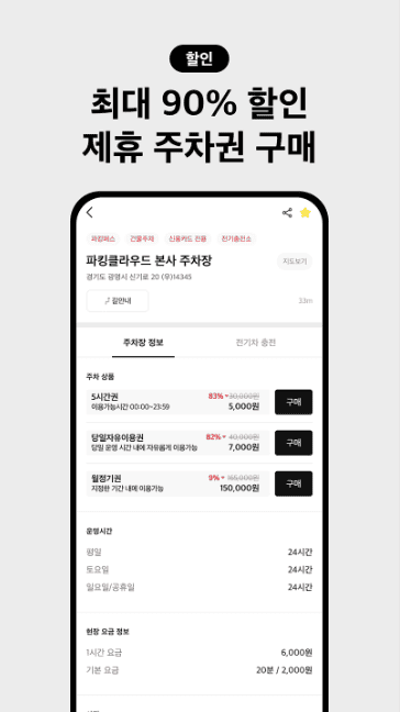 · 제휴주차장 현장 요금 대비 최대 80% 할인