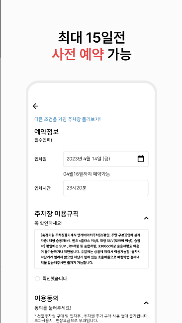 내가 원하는 옵션만 골라서 내 차에 딱 맞는 주차장 예약하기