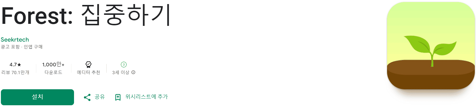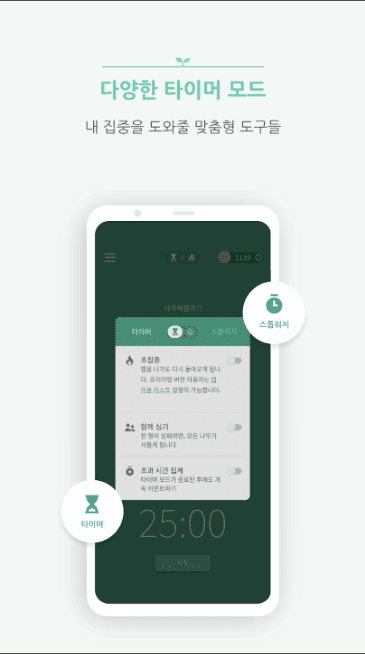 - 요즘 핸드폰을 너무 사용해서 줄여야겠다 생각을 했었는데 마침 좋은 어플을 발견하게 되었네요. 타이머설정해서 책 읽으니까 더 집중할 수 있는거 같아요! 식물들도 너무너무 귀여워요!