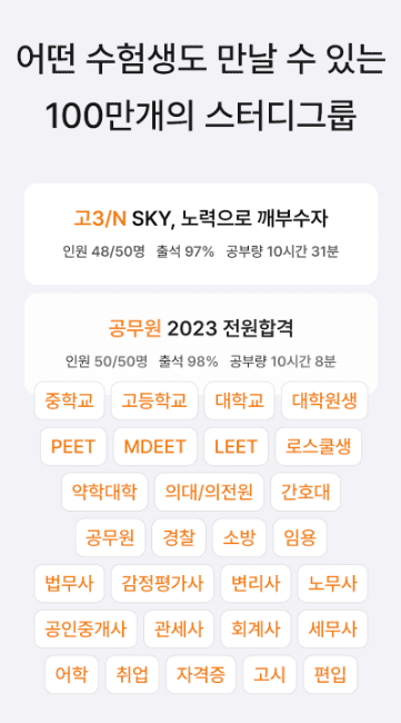 같은 공부를 하는 전국 강호의 공부상태를 확인하고 자극받으세요!