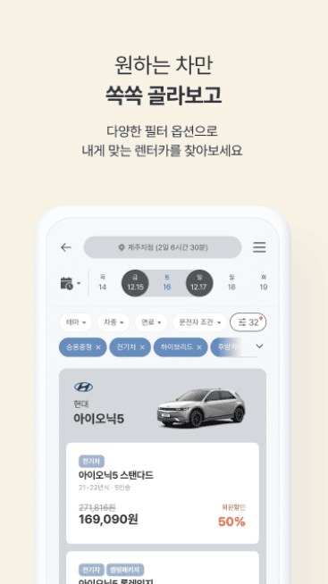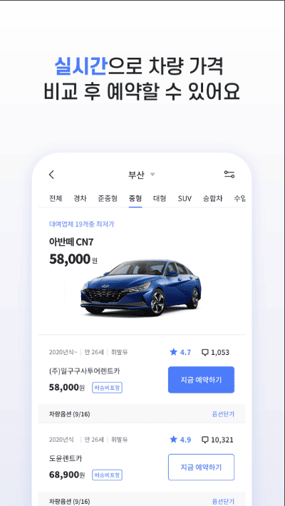 필터 기능을 활용하여 나에게 꼭 필요한 차를 예약해 보세요.