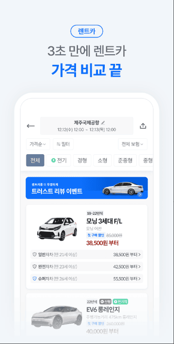 - 설정이나 차량선택 등이 매우 편리. 필터도 많아 차량 비교선택이 편합니다