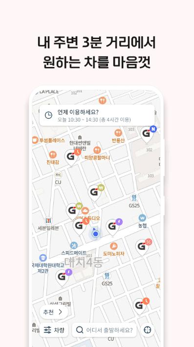 - 내 주위 3분 거리, 10분 단위로 경차부터 SUV, 전기차까지 대여