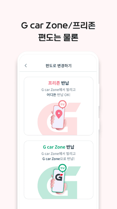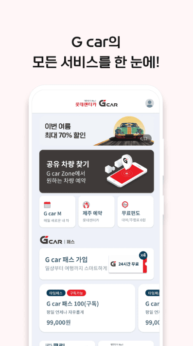 - G car 앱 하나로 가입, 예약, 이용까지 1분이면 OK