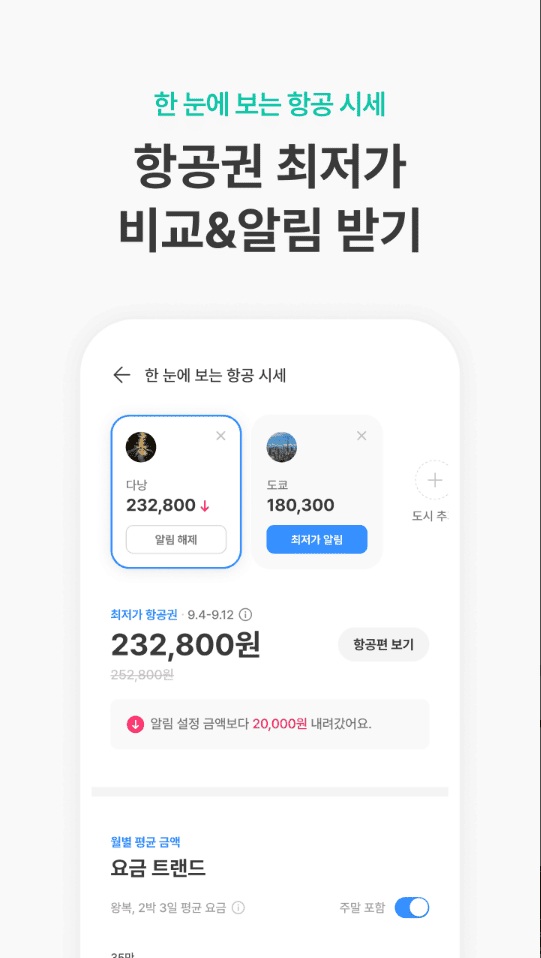 - 항공권 가격트렌드가 직관적으로 확인되어서 너무좋습니다.