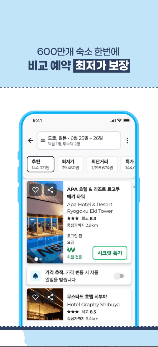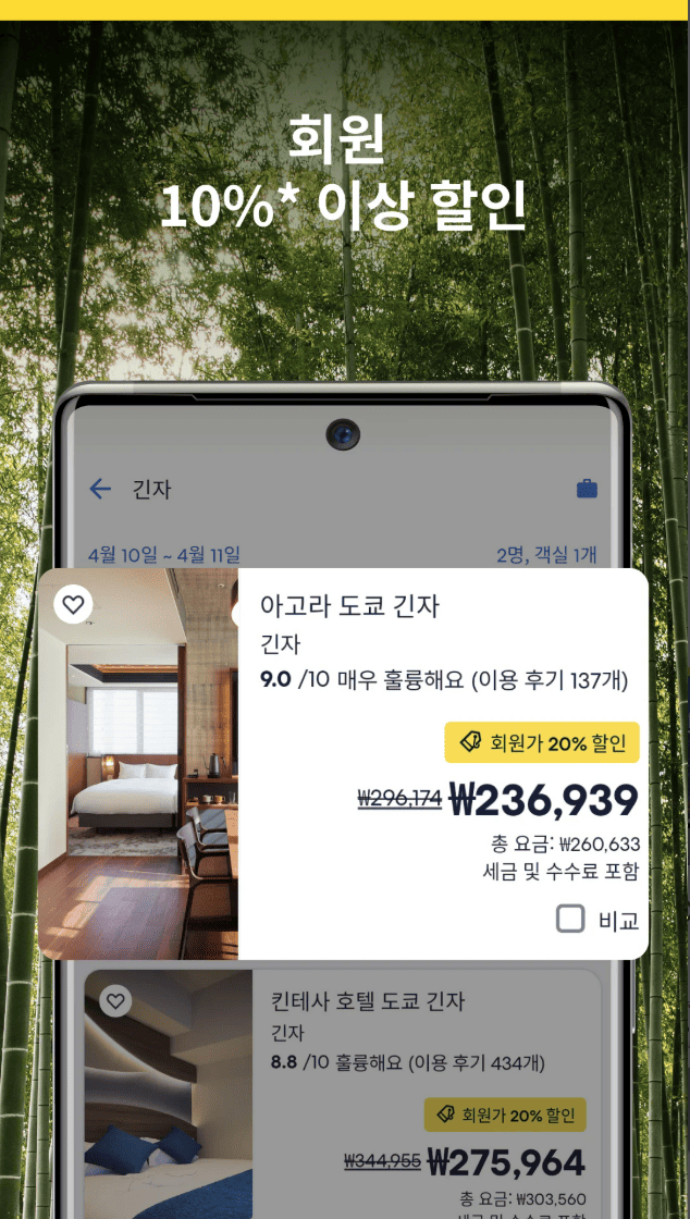 앱 전용 호텔 요금: 일부 호텔에서는 모바일 전용 가격을 제공합니다.