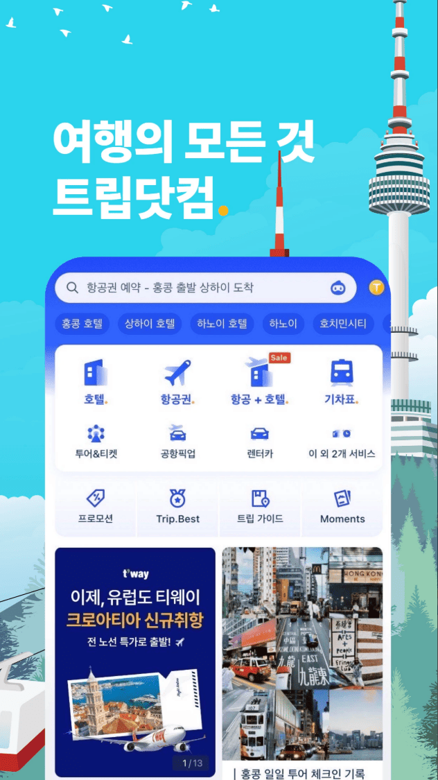 트립닷컴 앱을 사용하면 초저가 호텔, 항공권, 기차표를 쉽고 편하게 예약할 수 있습니다. 지금 트립닷컴 회원이 되어 최신 혜택과 회원 전용 특가 상품을 살펴보고 더 많은 할인 혜택을 누리세요!