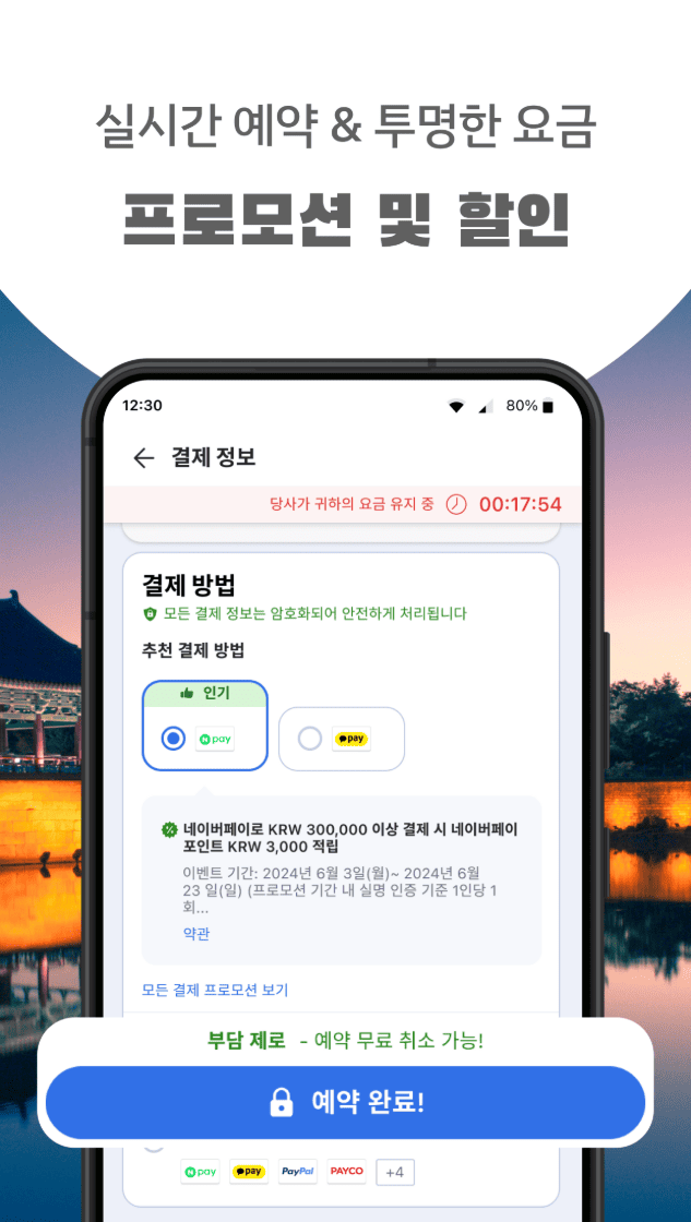 [35개 통화 및 다양한 결제수단]해외여행객을 위한 다양한 결제수단을 제공합니다. 트립닷컴 앱은 일반적으로 사용되는 모든 결제수단을 지원합니다.