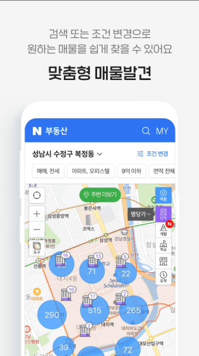 내게 꼭 맞는 조건의 매물을 찾고 있다면, 네이버 부동산!