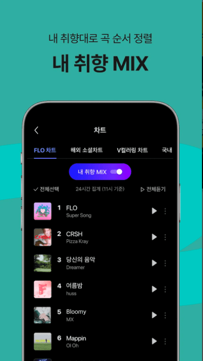 ● 나만을 위한 추천 믹스, 최신음악 믹스 등 선별된 맞춤 믹스